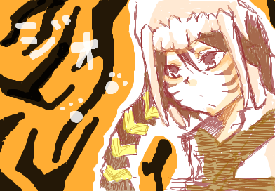 いや、過去に叫びたかったです。 ん?何があったか。ですか、 学校ですよ。それも式典です。 あー眠いです。いつもは十時過ぎに起きているのに 今日は9時頃起きです。 いや、友達に休日も会えて良いのですが・・・。 あっ。 今週の破面大百科を見ました。 before 「やばいらしいぞ!なんか薔薇ばら!愛薔薇薔薇(某黒教団のあ話のタイトル)らしいぞ!ブランコ、薔薇らしいぞ!」 after 「色々、世間から抜けた子だった。あははな子だと思った。でも、想像より大丈夫!まだいける!世間で生きていけれる!でも、市丸様に『君(きみ)』はダメだと思うんだ!」 そこだけ思いました。 いや、以外と私は強いと思った。 母「葉、多。そこだけかな。」 凄いなぁ。 流石・・・「ノイトラ様のパラボラは日よけの効果があるんじゃない?」って言った人だ。 目の付け所が違う・・・。 こんばんは、黒衣なななです!世間のブームに遅れつつ、今日はジオくんを描いてみました☆色は虎だということを考慮して、黄色+黒系で。おそらくかなり間違ってるとおもわれ・・・。………なななにはこれが限界です………がふっ。 この子は可愛いですよね。バラガンの部下の中で2番目に気になる存在です。猫科(サーベルタイガー?)っぽいので、グリムジョーと一緒に縁側で昼寝してたり、うっかり炬燵の中で寝て風邪とかひいてたら可愛いと思います。にゃごにゃごキャットファイトは…血を見るマジ喧嘩に発展する可能性大。 さて、昨日の空一から半分無茶振り的な要求が来てますね(笑)「サンドリヨン」についての語りですか。実は「サンドリヨン」ではまだBLEACH妄想が出来てないんですよね…。正確に言うと決まってないと言いますか…。海燕とアロニロとか、藍染様とアロニロとか、いろいろ考えてはいるんですが…(妄想なしで純粋に楽しむのもいいんですけど、せっかくなので。…というか無意識のうちに妄想してしまうんですよね(苦笑)純粋なボカロファンの人に申し訳ないです……;;) なななはボカロの中でも「人柱アリス」とか「悪ノシリーズ」とかの物語調になっているものが好きなのでシンデレラがベースの「サンドリヨン」とは波長が合ったことと、大好きな「うさ様」が歌われていたことも好きになった要因だったと思います。色気のある声っていいですよねv 最近無性に少女漫画が読みたい症候群です。冬コミの新刊がシリアス予定なのでその参考に…という名目で読みふけっとります。最近少年漫画ばっかり読んでいたのでいいですね。甘い恋愛ものも☆久しぶりに読むと肌に化粧水を浸けたような気分です(=潤いが戻る?) 基本、うちのサークルの話は少女漫画みたいな感じだと認識しているので実際かなり参考になってると思ってます。…本人が思ってるだけであんまり変わりないかもですが……… ただいま冬に向けてのネームきってます。あんなに少女漫画っぽいとか言ったくせに今回は結構暗い感じになりそうです。今甘くできるところはないかと探しているところです。シリアスってどうすれば!!! 新刊はイルザエ・アロザエ予定ですが、なんだか繋がった話になりそうです。それぞれ単体でも読める仕様にはしようと思いますが合わせて読めば2倍楽しく…なればいいかな。 というわけで、原稿にいってきます!!